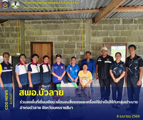 สพอ.บัวลาย ร่วมลงพื้นที่เยี่ยมเยียน เพื่อมอบสิ่งของและเครื่องใช้จำเป็นให้กับกลุ่มเปาะบาง อำเภอบัวลาย จังหวัดนครราชสีมา